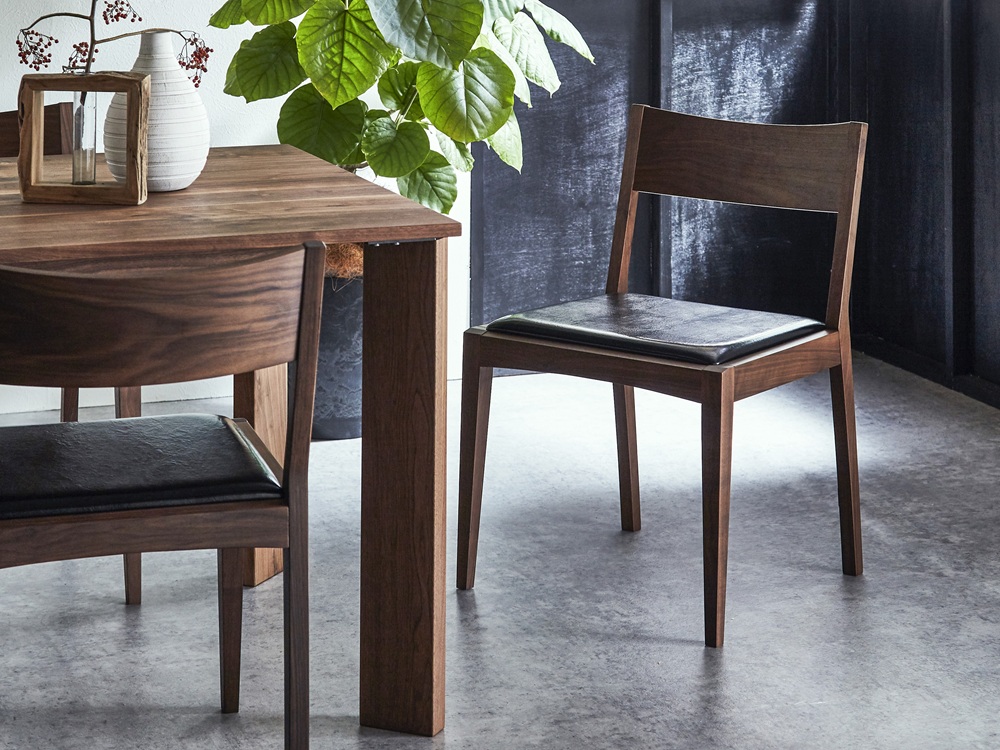シンプルな板座のチェアであれば、木目の美しさがダイレクトに伝わるウォールナットやチェリーを選ぶと、食卓に高級感と彩りを与えてくれます。