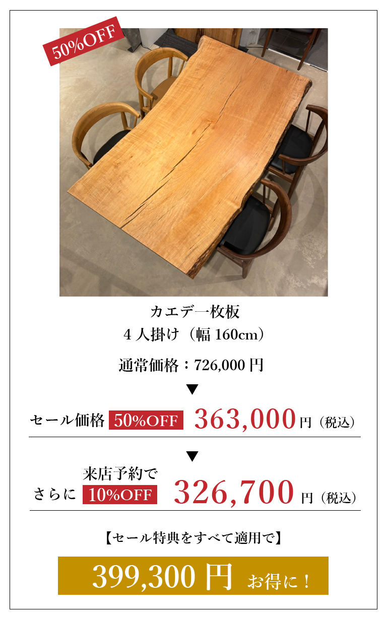 アウトレット一枚板が、さらにお得に!